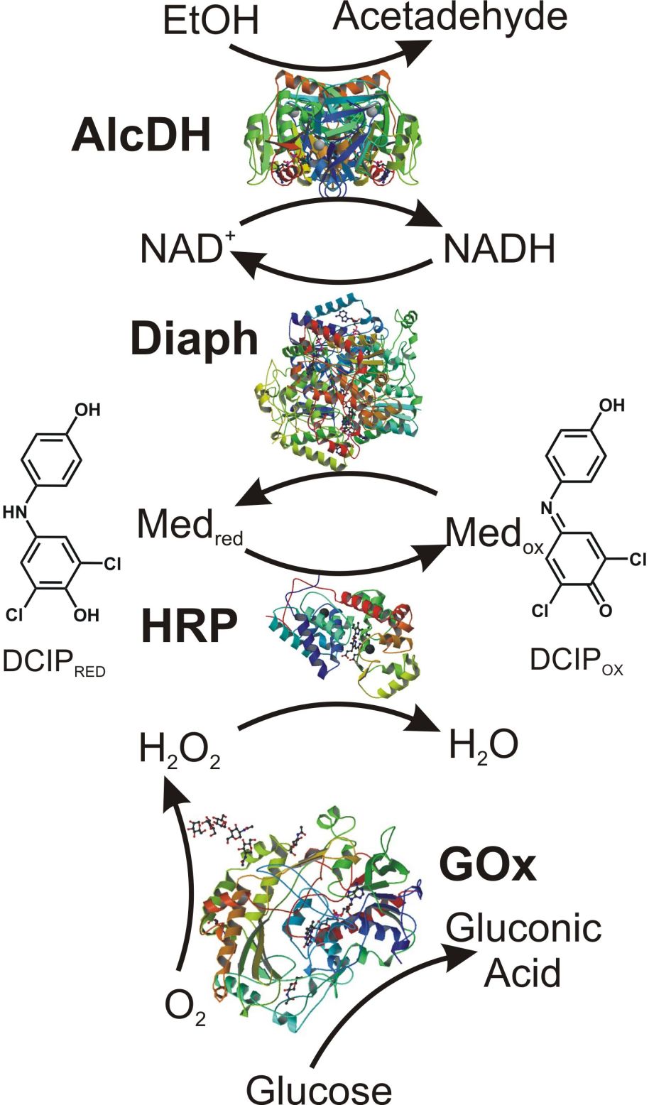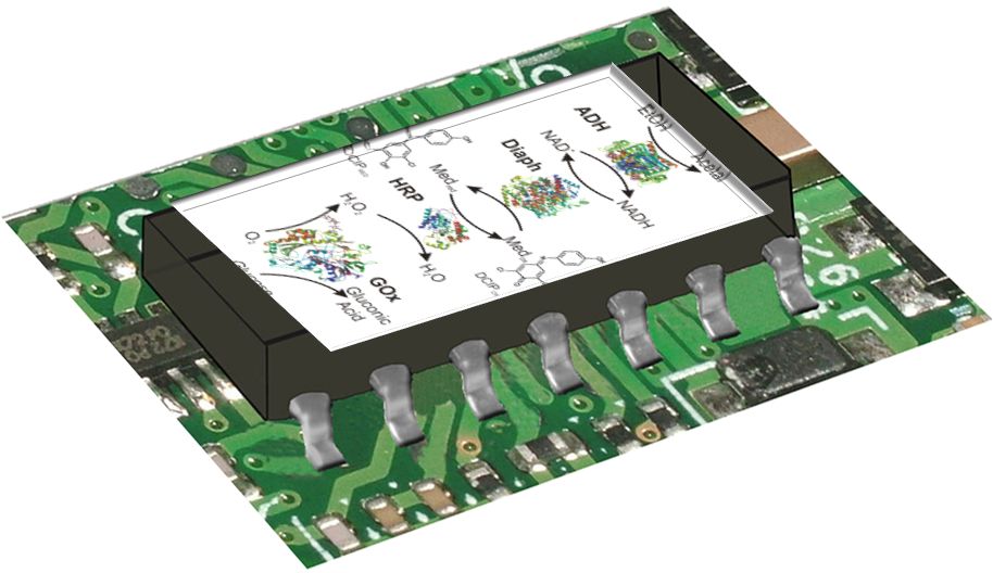 concerted operation of several enzymes. Using glucose oxidase (GOx) and