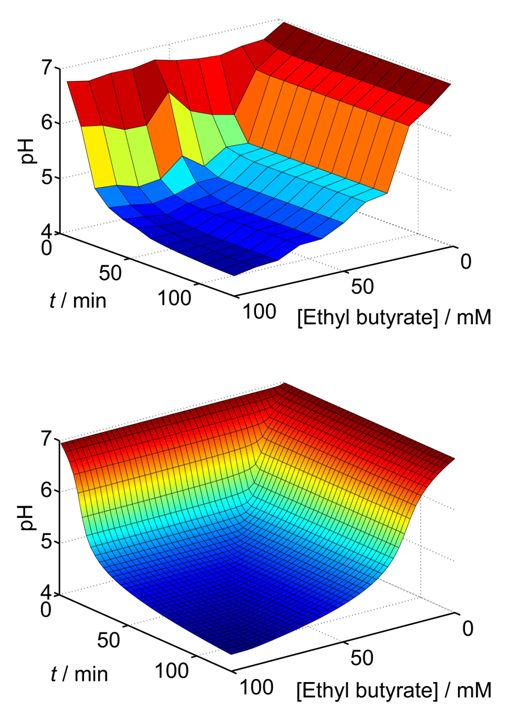 initial substrate concentration (ethyl butyrate) and reaction time, for