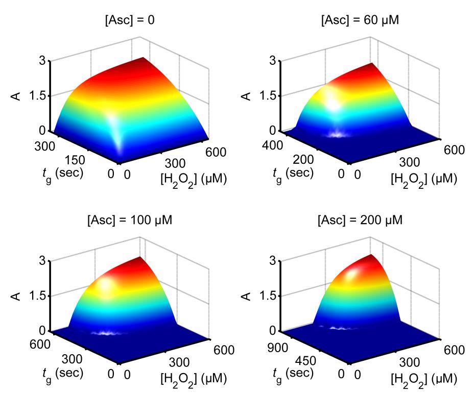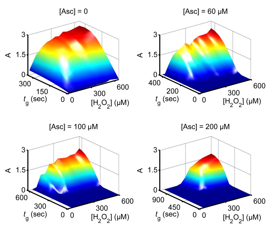 ascorbate, the concentration of which is shown above each plot.