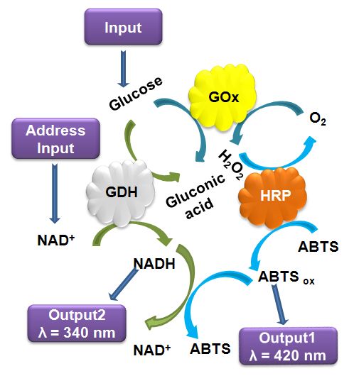 biocatalytic system mimicking the 1-to-2 demultiplexer, where glucose