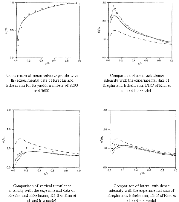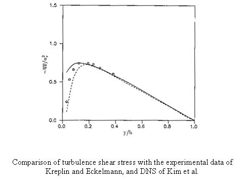 In this section the rate-dependent model predictions are compared with the experimental data of Kreplin and Eckelmann, DNS of Kim et al. and the k-e model predictions